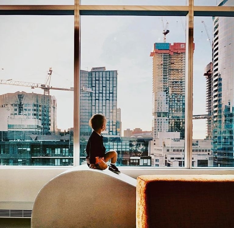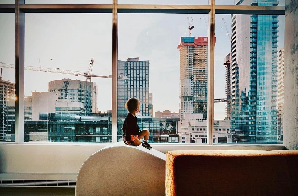 This is an image of my son string at the construction sites of various buildings in the Montreal Downtown area. Fascinating view of the development of the city.