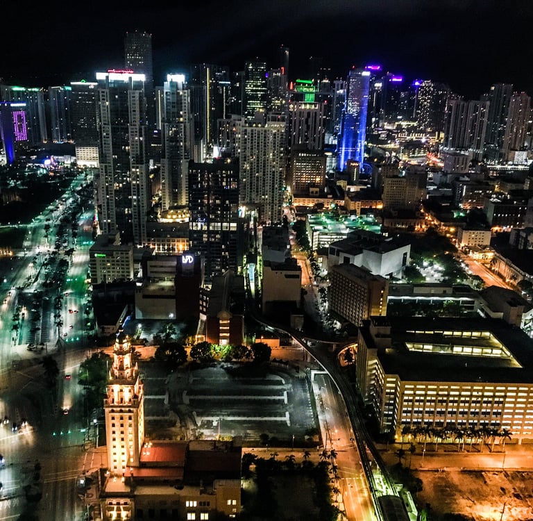 Shot from a high-rise, this image shows us the southern side of Miami Downtown and Brickell area. We also see the liberty tower and a big chunk of the skyscrapers in the Brickell area. Miami is a constantly evolving city. This shot was taken in 2017.