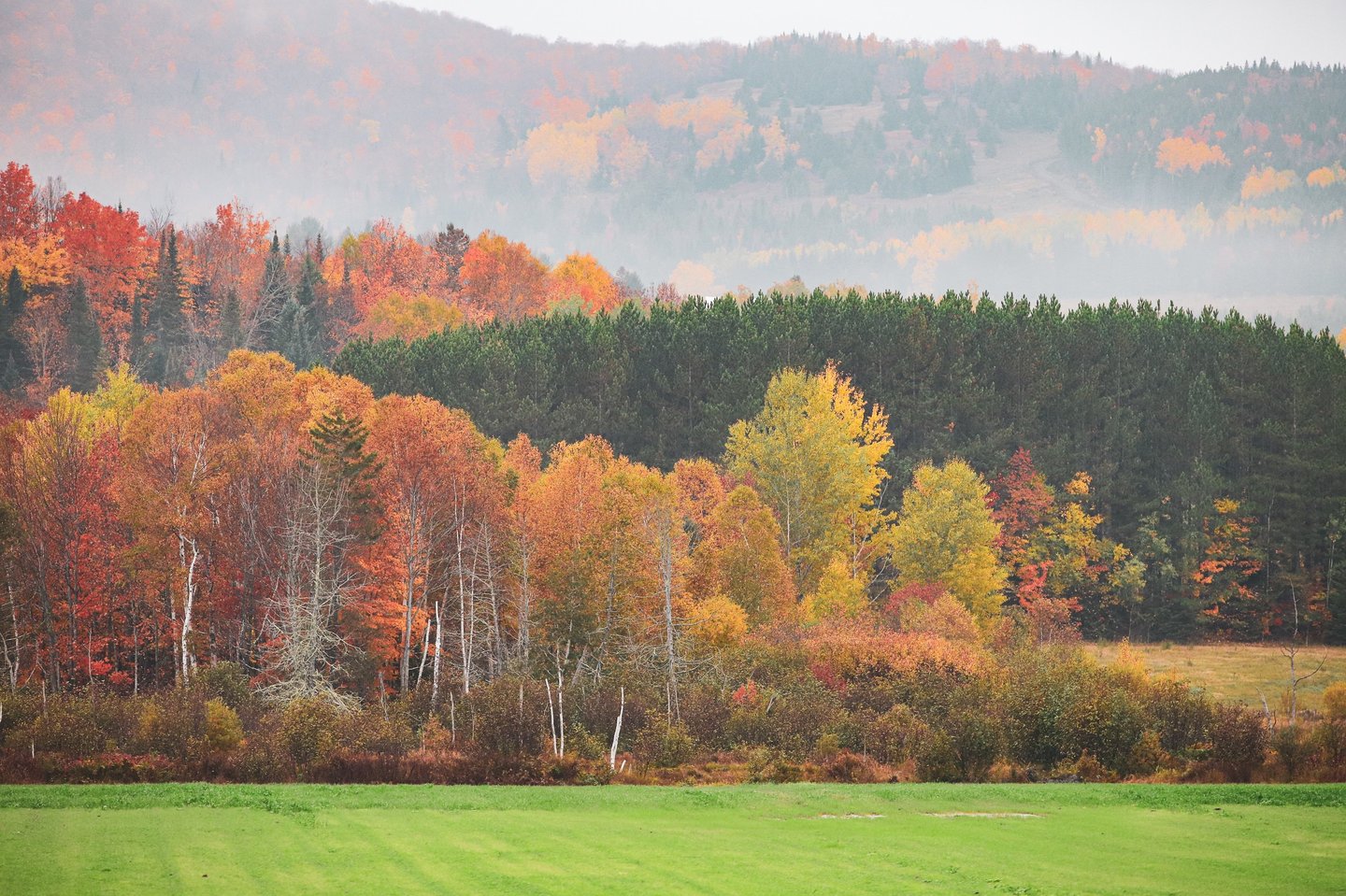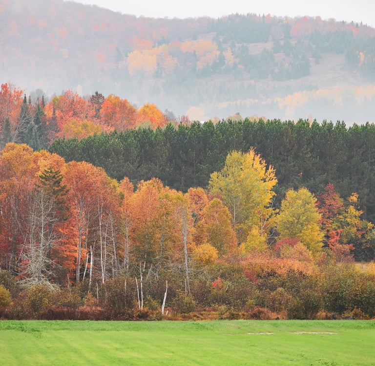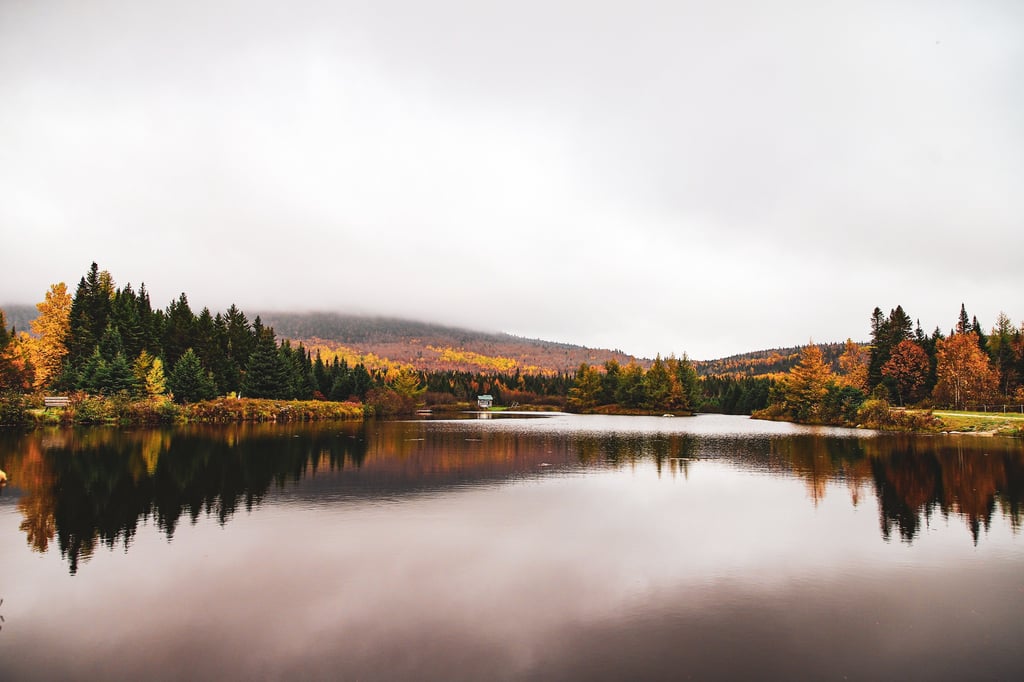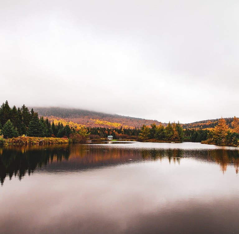 Shot in the town of Notre-Dame-Des-Bois in QC, we can see the beautiful variety of colors during the fall season. This small lake allows us to see the true beauty of fall time on a cloudy day. Sunny days are fun but cloudy days have allot of character too! I personally love misty, cloudy fall days and this is why I always take this image every year.