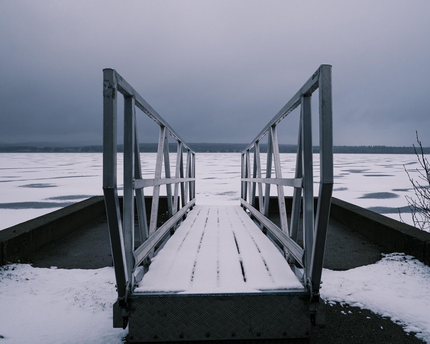ON THE SIde of the lake on a winter day