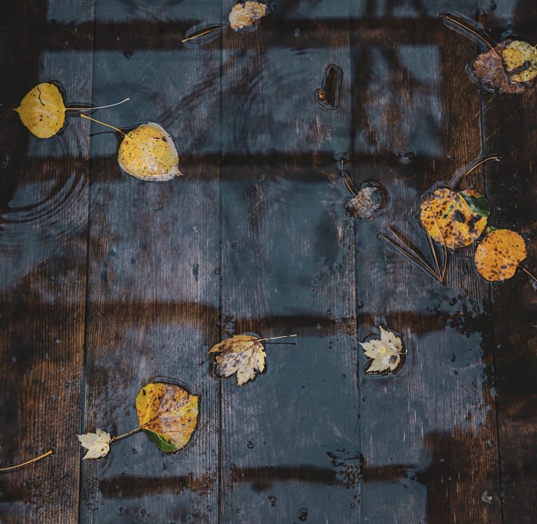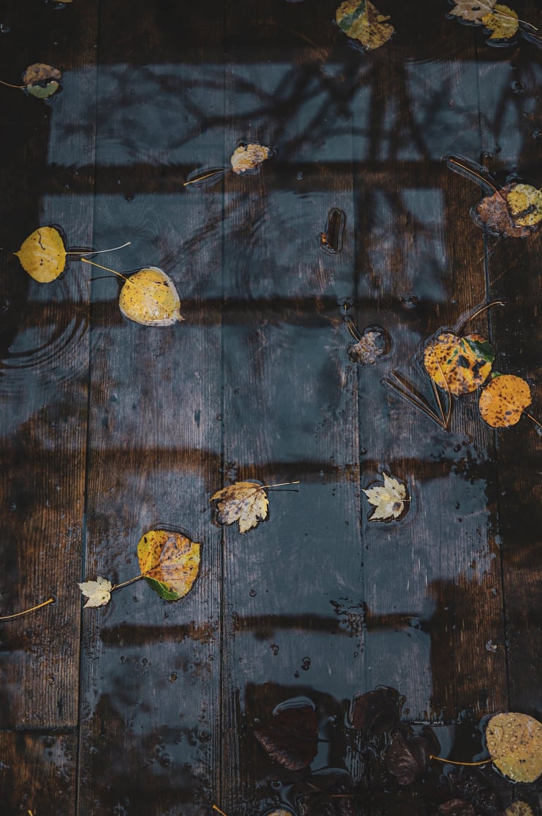 WET PLANKS AND YELLOW LEAVES